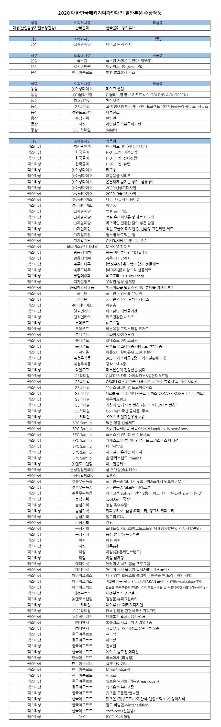 2020 제29회 대한민국패키지디자인대전 일반부문 수상작품 발표